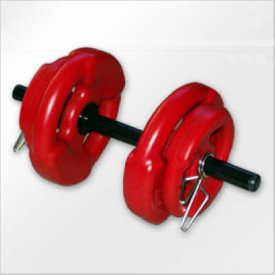 Modelo MiniEquipo compuesto por:2 discos de 2,5 Kg. 2 discos de 1 Kg., 1 barra de 40 cm. y 2 pinzas sujetadoras.Colores disponibles:rojo